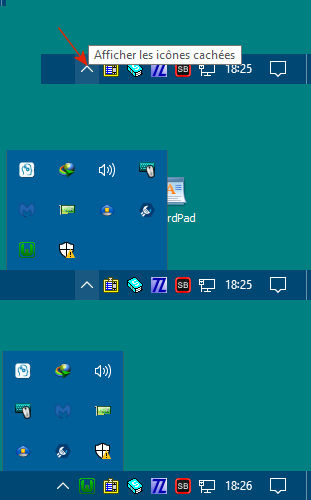 Après lancé Wampserver par son raccourci, vous verrez l'apparition brève d'une fenêtre, puis vous devez obtenir l'icône Wampmanager dans la zone de notification en bas à droite de l'écran. Cette icône doit être VERTE. Dans certain cas rares, cette icône n'apparaît pas mais se trouve dans la zone des Icônes cachées.